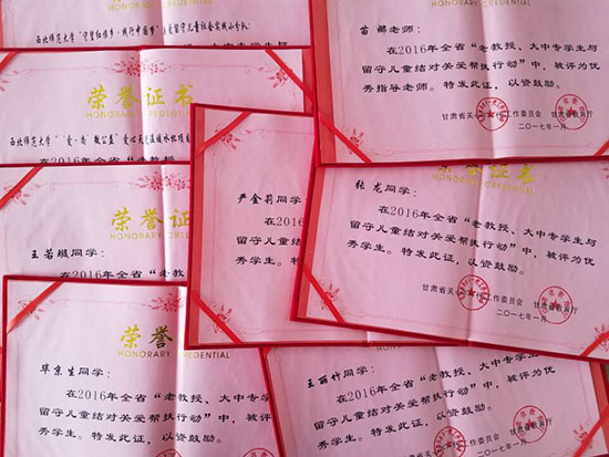 为深入贯彻国务院《关于加强农村留守儿童关爱保护工作的意见》,省关工委、省教育厅联合部署在农村留守儿童中开展了“大中专学生与留守儿童结对关爱帮扶行动”,并评选了先进集体和个人,全省35名大中专学生、14名指导教师、14支志愿服务队伍获表彰。