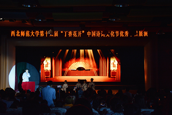 “丁香花开”中国诗词文化节作为我校精品校园文化活动之一,当晚的展演作为本届“丁香花开”中国诗词文化节的收官之作,校学生会从24个学院推荐的节目中,经过多次编排,最终确定了10个优秀节目进行了展演。