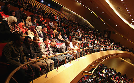 11月8日晚,由省委宣传部、省政府办公厅、省文化厅组织发起,省国际文化交流中心(协会)主办的在兰高校留学生专场大型经典剧目《丝路花雨》演出在甘肃大剧院举行,西北师大组织350余名留学生和外教观看了演出。