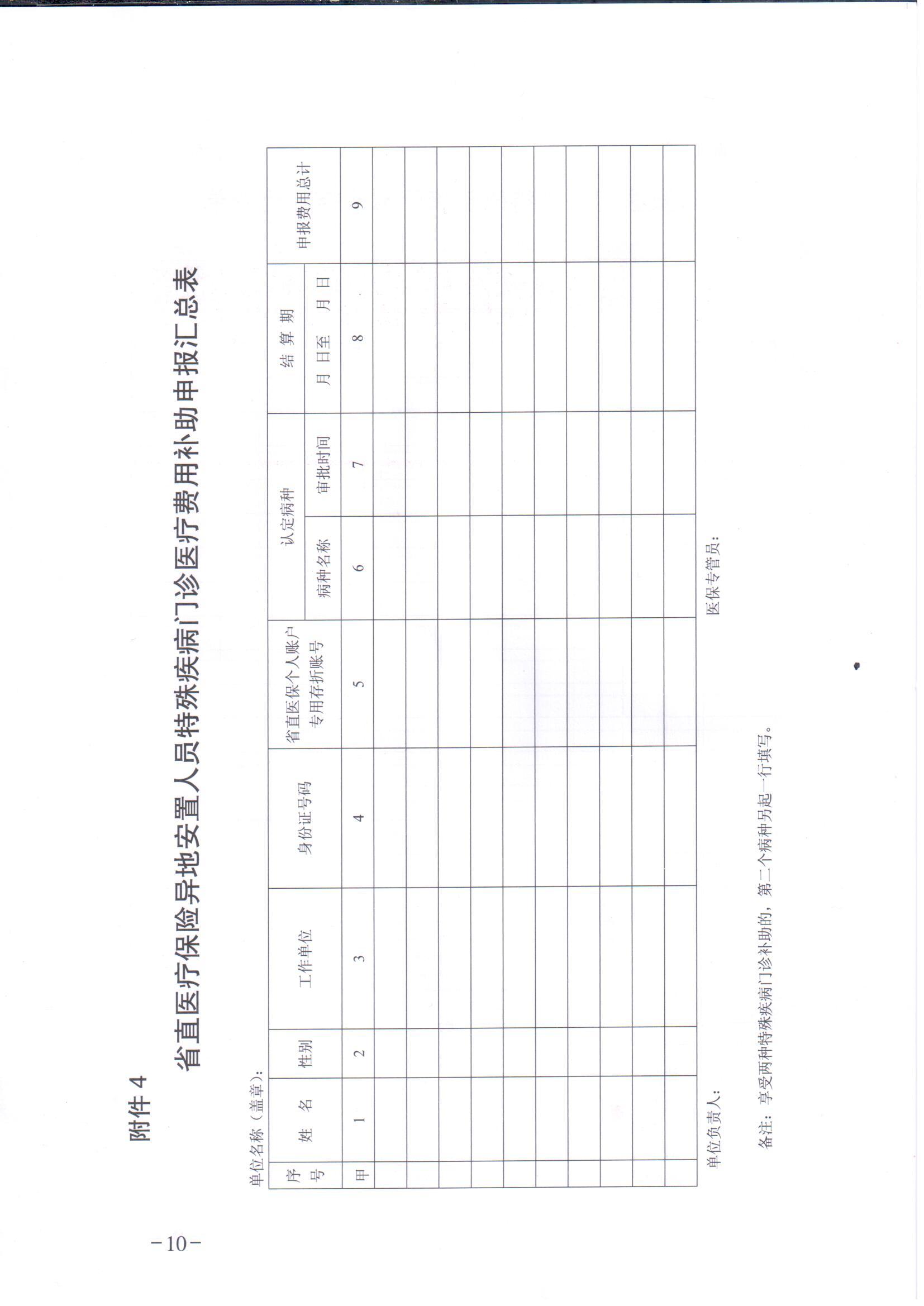 省直医疗保险定点医疗机构特殊疾病门诊补助医疗费用申报汇总表