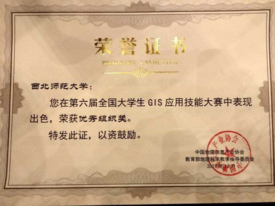 西北师大学生获第六届全国大学生GIS应用技能大赛一等奖