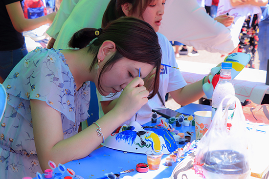 来自外国语学院的朱建霞是一名志愿者。记者在活动现场看到,她和来自埃塞俄比亚的Biruk等合作伙伴“打成一片”,在他们的文化展区接待师生,忙得不亦乐乎。“被遴选为志愿者后,我就和他们成为了好朋友。通过不断地交流和沟通,深入了解了对方的文化,协助他们设计展板、制作美食等工作时,就非常顺利了。”朱建霞说。