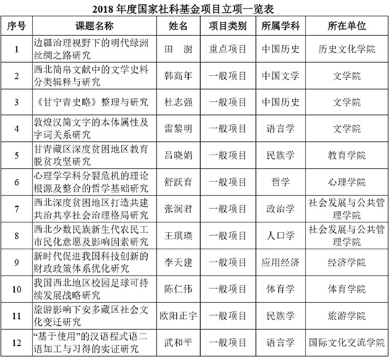 近日,2018年度国家社科基金项目评审结果公布,西北师大获准22项。其中,重点项目1项,一般项目11项,青年项目2项,西部项目8项。获准项目居全省高校立项之首。