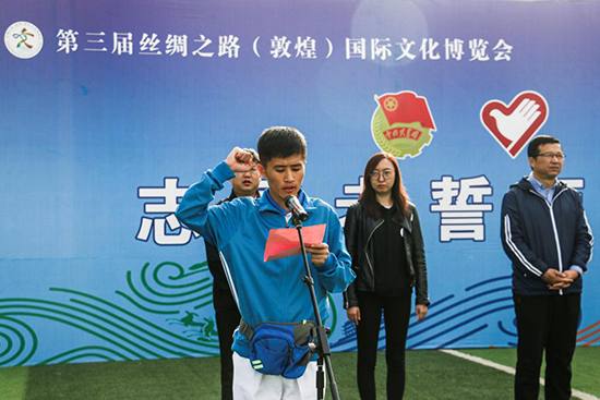23日上午,第三届丝绸之路(敦煌)国际文化博览会志愿者誓师大会在日韩人妻无码一区二区三区久久99_日韩精品一区二区三区中文在线_无码日韩精品一区二区免费_久久久91精品国产一区二区三区_亚洲精品久久久一区黄无码_国产91精品一区二区麻豆网站_成人国内精品久久久久影院敦煌学院举行。外国语学院志愿者常晓东带领全体志愿者进行了庄严的上岗宣誓。志愿者们将以实际行动践行“奉献、友爱、互助、进步”的志愿精神,振奋精神、鼓足干劲,以青春之我,奋斗之我,为本届文博会的圆满举办贡献力量,树立文博会青年志愿者的良好形象。