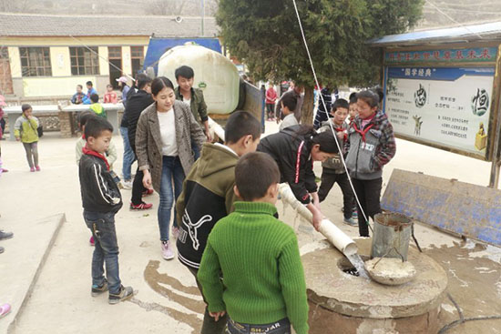2018年,新校长来了,水也来了!这学期,校长上任后便做出了从县里买水的决定:一罐车水是160元,从学校经费里出。可是,新的问题来了:水有了,孩子们怎样才能随时喝上热水?得知消息的自强社志愿者们决定,买两个储存水的保温桶,“让孩子们喝上热水。”水有了,孩子常年干裂的嘴唇终于湿润了。