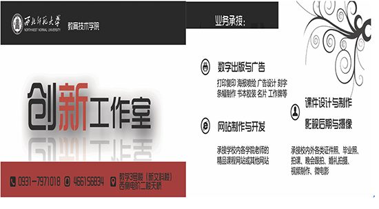 近年来,教育技术学院改革教学模式、改善办学条件、发展师资队伍、提升学术科研成效显著,但如何将这些成果落地迁移转化到学生身上一直是学院想要解决的问题。经过反复论证,认为将课程知识转化为系统解决问题的能力及成长为创新型人才,都需要综合类的项目进行实践训练。2014年6月,学院为学生搭建实践历练的平台,在校内电阶楼二层东侧的“天桥”投资30万元创建占地90平方米的“天桥”工作室。工作室依托教育技术学、数字媒体艺术、数字出版专业特长和优势,将学校和师生的现实需求变为课题和项目,设立“网站课件制作”“摄影摄像”“数字出版”“发展运营”四个部室,承接校内外业务。