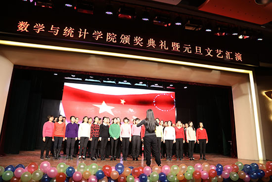 近日,数学与统计学院举办新年文艺汇演暨颁奖典礼,表彰了2018年学院先进党支部及优秀党员、第五届青年教师教学大赛获奖者、本科生及研究生国家奖学金、校级奖学金奖获得者。