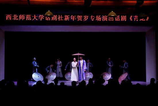 近日,西北师大大学生艺术团话剧社举办了为期两天的迎新年话剧贺岁专场展演。全校1000余名师生观看了话剧《亲爱的安德烈》《青蛇》及小品专场演出。