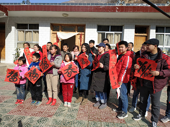 “我认为,扶贫不仅扶的是物质,更要注重精神扶贫和文化扶贫。”心理学院谈晓东同学说,他们创作的书法作品,被很多村民家悬挂在主屋,不但营造了浓浓的中国年气氛,而且提升了家庭文化。