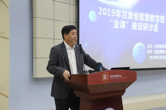 此次高校智慧教学暨“金课”建设研讨会的主题是“深入贯彻落实全国教育大会、新时代全国高等学校本科教育工作会议精神,以智慧教学推动信息技术与教育教学的深度融合,全面提高高校人才培养能力和质量,助推甘肃高等教育‘变轨超车’”。