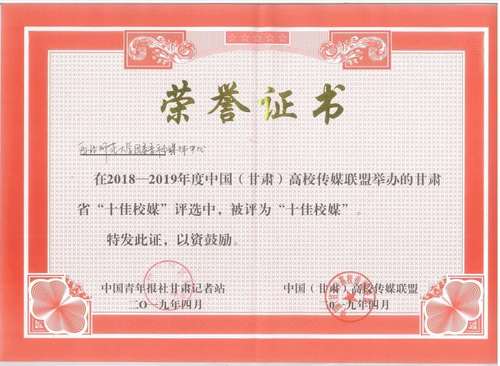 西北师大团委青年全媒体中心荣获“甘肃省十佳校媒”荣誉称号