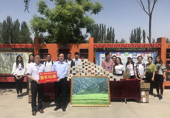 受华鼎国学研究基金会委托,田澍一行向库车县伊西哈拉镇中学(库车九中)、新和县依其艾日克镇中学捐赠了7套1024册、总价值3.6万元的爱国主义教育图书。