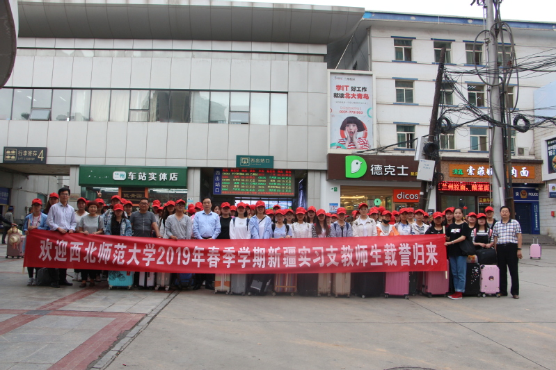 2019年春季学期,西北师大第22批赴新疆实习支教的594名师生,分别在阿克苏地区8县1市的75所学校开展实习支教工作。在实习支教过程中,同学们顾全大局、遵规守纪,克服水土不服、角色转换等困难,努力适应当地生活,积极主动做好实习支教工作,锻炼了从教技能,提高了综合素质,为新疆民族地区基础教育和民族教育的发展贡献了自己力量。支教工作受到实习支教学校领导和师生的广泛好评,为学校赢得了荣誉。