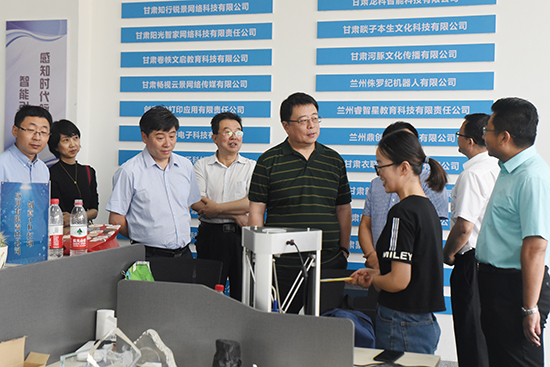 曹煜中一行先后深入西北师大中和大学生创意创业孵化基地、甘肃省智能感知与数据分析专业化众创空间、校史馆、博物馆,详细了解学校办学历史和办学情况,实地调研“甘肃省智能感知与数据分析专业化众创空间”建设情况。