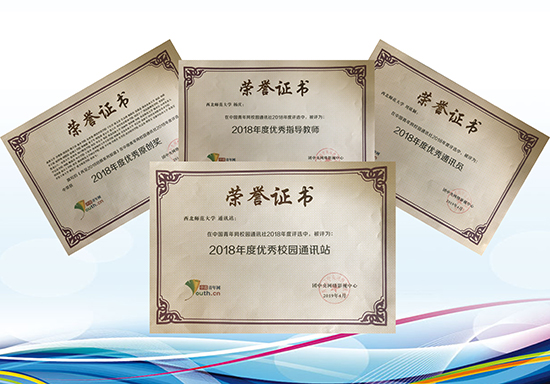 近日,团中央网络影视中心、中国青年网发布了《关于中国青年网校园通讯社2018年度评选活动的通报》。西北师大团委青年全媒体中心通讯站获评“优秀通讯站”,杨庆老师获评“优秀通讯站指导教师”荣誉称号,教育学院刘欣颖同学获评“优秀通讯员”荣誉称号,杨亚洁同学撰写的稿件《再见2018回顾系列报道》获评“2018年度优秀原创奖”。