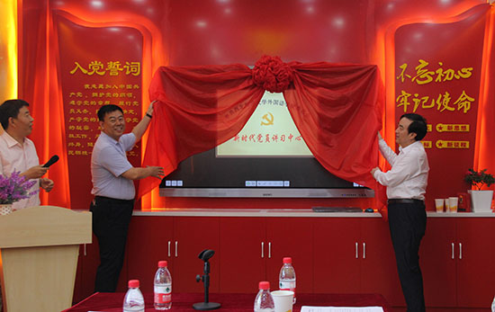 培训会后,副校长田澍与景志锋在外国语学院新建成的党员活动室,共同为学院“新时代党员讲习中心”揭牌。