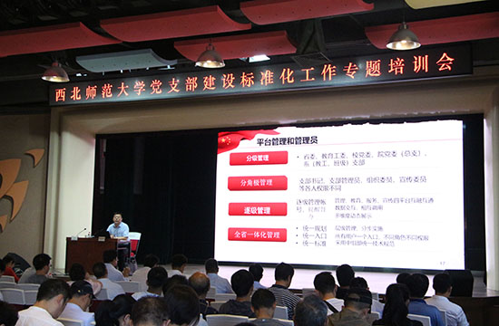 为进一步做好“甘肃党建”信息化平台推广使用与管理,创新党支部建设标准化工作途径,95日下午,西北师大举办第七次党支部建设标准化工作专题培训会,邀请省委组织部党员教育中心副主任景志锋作了题为《用好党建信息化平台推动基层党组织建设标准化》辅导报告。各基层党委(党总支)书记、副书记、专职组织员、各支部书记300多人参加了本次培训。
