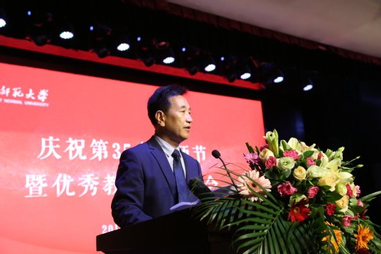 “‘优秀教师’的称号不仅仅是一份荣誉,更是一种使命。” “优秀教师”代表、教育学院李金云教授说,“我们应该继续以一代代师大人为学习榜样,继承和发扬他们爱岗敬业、教书育人的优秀传统,要以时不我待、只争朝夕的精神肩负新使命,以一以贯之开拓进取的姿态激发新作为,实现个人发展与学校发展的协同并进!”