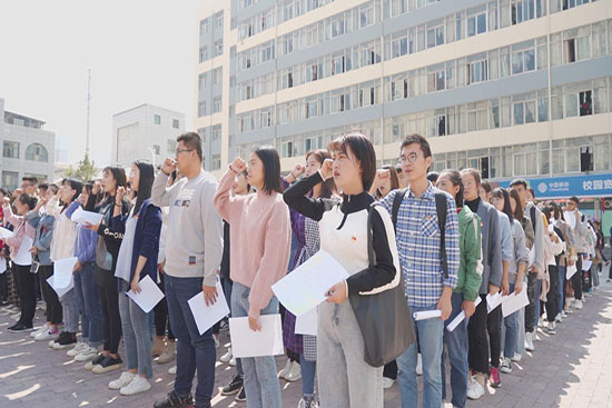 微党课上,“我志愿加入中国共产党,拥护党的纲领,遵守党的章程……全体党员举起右拳,面对党旗,用铿锵有力的声音,重温了入党誓词。随后,一起诵读了毛泽东同志的文章《为人民服务》,一起聆听了由马克思主义学院王树亮讲述的《张思德的故事》。