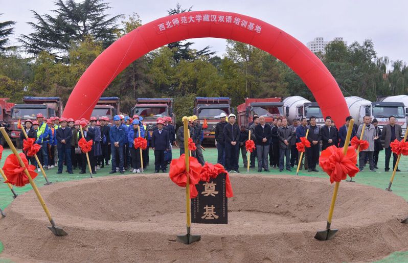 10月24日,西北师大藏汉双语培训基地建设项目举行开工奠基仪式。党委书记张俊宗、校长刘仲奎、副校长李建民和学校相关部门负责人,勘察单位、设计单位、施工单位、监理单位负责人,教职工代表等150余人参加开工奠基仪式。