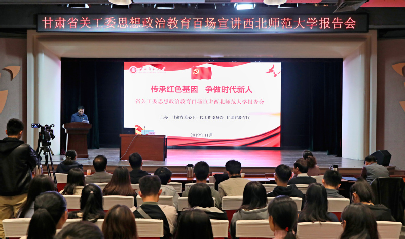 为深入学习领会习近平总书记视察甘肃重要讲话精神,全面贯彻落实习近平总书记在学校思想政治理论课教师座谈会上的重要讲话精神,1111日下午,由省关工委主办的全省思想政治理论教育百场巡讲走进西北师大,省委党校(甘肃行政学院)党的建设和领导科学教研部副主任、教授高璐佳作专题报告,省教育厅老干处处长王筱亭、省关工委办公室调研员吴丽出席宣讲会,西北师大党委副书记刘玉泉主持宣讲会。