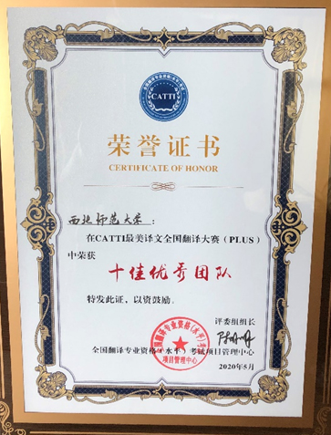 西北师大外国语学院MTI培养管理中心动员翻译硕士与其他学生积极参与、展现风采,学校最终获得“十佳优秀团队”荣誉称号。