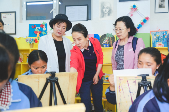 邓小娟深入考察了西北师大对口支持学校的基础设施建设、教师课堂教学以及校园文化活动开展等情况,并就如何推进实施体育美育浸润行动计划召开座谈会,进行深入交流。