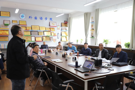 学校办公室、学生社区党工委、教务处等部门负责人及外国语学院班子成员、系部主任参加调研会。