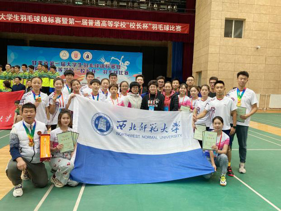 1018日,在甘肃省第一届大学生羽毛球锦标赛暨第一届普通高等学校“校长杯”羽毛球比赛中,西北师大乙组获男子团体金牌、女子团体铜牌,李惠涵获男子单打冠军,李乃卿、董康乐获男子双打冠军,常艳霞、马润菊包揽女子单打金、银牌,曹双静、王文佳,贺锋、赵丽燕获女子双打第四、五名;甲组获女子团体第五名,邓宏伟获男子单打冠军,李昊轩、安文宇获男子双打第四名,杨文丽、景燕子,王亦欢、他碧华分别获得女子双打第四、五名。