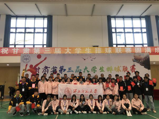 109日,在甘肃省第三届大学生排球联赛中,西北师大乙组代表队获男子团体金牌,女子获团体第二名;甲组代表队获男子第六名,女子第七名。