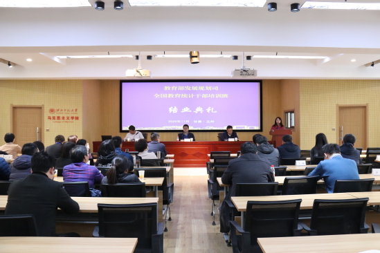 教育部发展规划司统计信息处、民办教育处、事业发展处及有关直属单位(院校)负责人,全国31个省(市、自治区)教育厅(委)统计业务骨干,国家级培训基地、科研院校负责人,在兰高校代表200多人现场参加开班仪式。全国各地市、区县3216名教育统计主管领导通过全国教育统计在线培训平台在线参会。