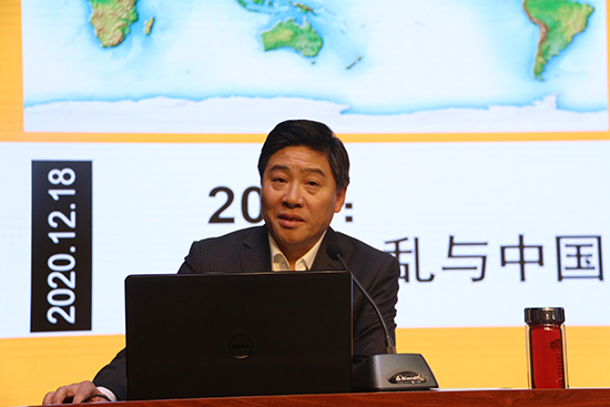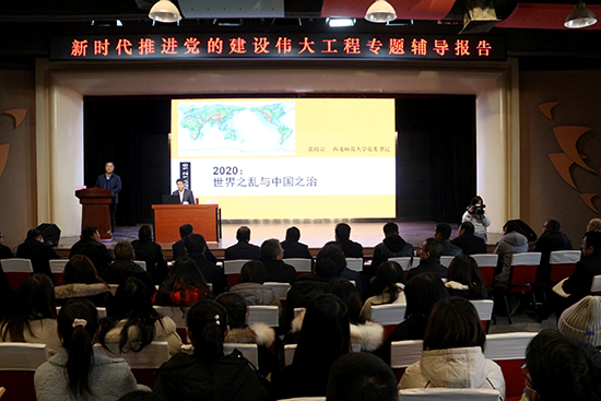 12月18日下午,西北师大党委书记张俊宗为师生作题为《世界之乱与中国之治》新时代推进党的建设伟大工程专题辅导报告。党委副书记刘玉泉主持报告会,各学院党委书记及师生代表共300余人参加报告会。