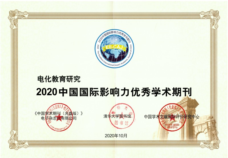 根据2020年发布的《中国学术期刊国际引证年报(人文社会科学)》,《电化教育研究》荣获“2020中国国际影响力优秀学术期刊”。在2020年推出的《中国学术期刊评价研究报告》(第6版)中,《电化教育研究》被评为“RCCSE中国权威学术期刊(A+)”。