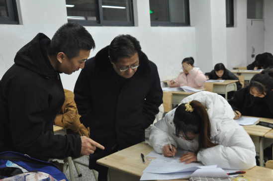18日下午,西北师大副校长董晨钟带领教务处、教学质量监控处相关负责人,学校教学督导深入到各考场检查考试工作,就考试组织、考场秩序、监考教师履职、考生遵守考纪等情况进行重点检查和指导。