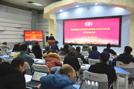 1月7日,西北师大研究生院在教师发展中心举行2020年度研究生学术月活动工作总结会。副校长韩高年出席会议,研究生教学督导与评估委员会委员,党委学生工作部、研究生院及各学院分管研究生工作副院长、研究生秘书参加会议。