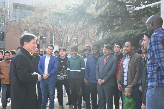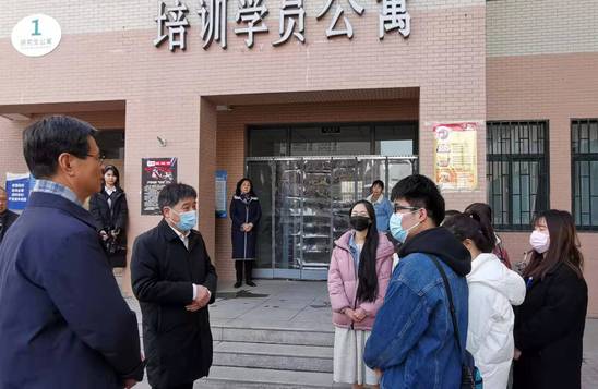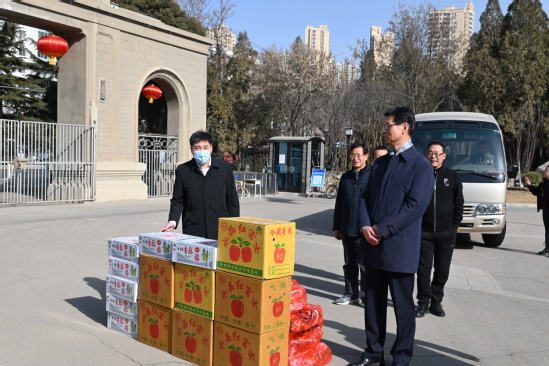 张俊宗、刘仲奎一行先后来到财务处、博物馆、专家楼、武保处、学校家具库房、留学生公寓、收发室、校医院、锅炉房、校园管护中心、研究生公寓等单位,向坚守岗位的职工和寒假留校的7名学生致以节日的问候和新春的祝福。每到一处,校领导与大家互致问候,祝福新年。感谢大家的辛勤付出,祝愿他们身体健康,生活幸福,新春快乐,并嘱咐他们继续做好疫情防控、安全和服务保障工作,确保全校师生度过一个安全、祥和、愉快的新春佳节。