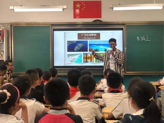 活动中,留学生给小学生介绍了本国地理位置、节庆风俗及本国小学生学习与生活内容,中外学生共唱外国民谣、分享学习语言的经验;留学生教小学生们用多国语言说“中国——真美”,将活动推向了高潮。
