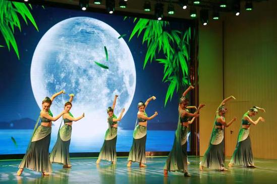 舞台上,舞蹈学院2018级舞蹈学专业师生将课程思政实践教学与民族团结进步宣传活动紧密结合,以民族民间舞的形式让观众感受到中华文化的多元和美丽,以实际举措强化了青年学生“中华民族一家亲”的情感认同。