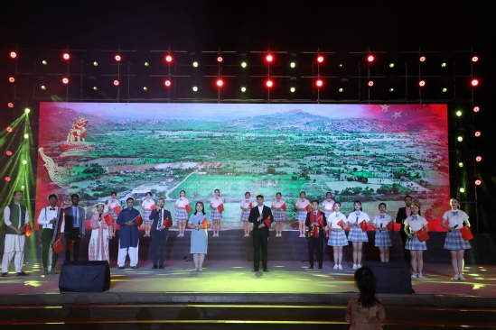 晚会以百年党史为背景,紧紧围绕“青春心向党·雅言诵华章”主题,通过纵览中国共产党成立以来的重要历史事件,串联起党的百年奋斗历程。来自历史文化学院、旅游学院、舞蹈学院等12个基层学院团委的500余名团员青年以诵读、舞蹈、歌曲、舞台剧、合唱等多种艺术形式,以昂扬的精神,饱含深情地演绎了《南湖·初心》《无名的功勋》《信仰如炬》《伟大的觉醒》《新的天地》《爱在远山》《我们都是护旗手》《不忘初心》等14个经典作品,重温了中国共产党从南湖红船的启航到天安门城楼的庄严宣告、从南巡讲话的春天到民族伟大复兴的中国梦,再现了先辈们崇高的革命信仰和救国救民的不懈追求。在全场高唱《没有共产党就没有新中国》的歌声中展演落下帷幕。
