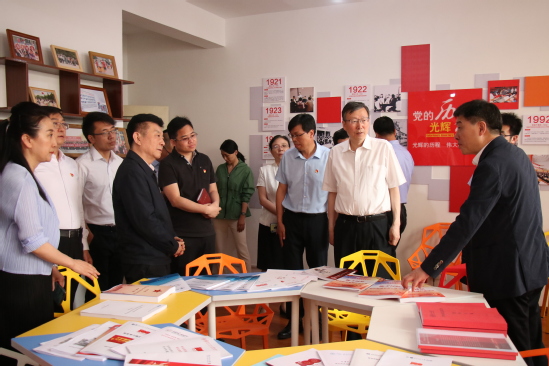 指导组一行先后深入文科实训楼信息展示大厅、信息服务大厅、美育中心及兰天学生公寓等地,多角度、多方位了解学校、学院及学生社区党工委党史学习教育开展情况,并现场进行督导指导,确保各项任务落地落实。