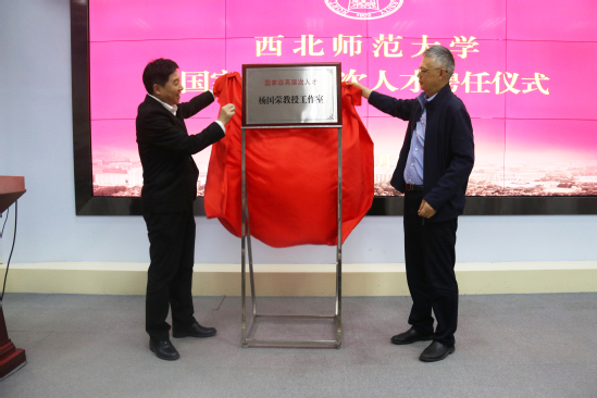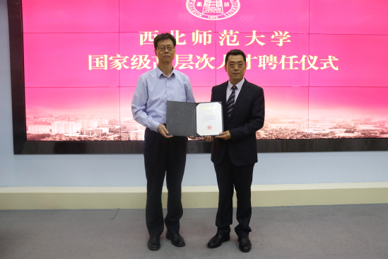 张俊宗讲话指出,两位教授入选国家级高层次人才,是学校学科建设和人才队伍建设方面取得的重大成果,是西北师大办学历史上的大喜事。希望两位教授发挥“领头雁”“排头兵”作用,高层次助推学科建设发展,高标准培育多学科交叉集成创新团队,高质量催生新型交叉学科建设动力,开创学校事业发展新局面。他强调,学校和学院要牢固树立“围绕发展用人才,用好人才促发展”的工作理念,创新人才发展新机制,破解束缚人才发展的思想观念和体制机制障碍,构建起科学规范、开放包容、运行高效的人才发展治理体系,为学校建设“双一流”提供坚强有力的人才保证和智力支持。