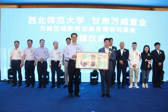 仪式上,邵玺臣、李朝东代表双方签署了战略合作协议。王海熙,西北师大社会合作服务处处长、教育发展基金会副理事长杨纳名签署了区域创新教育发展研究基金捐赠协议,刘仲奎向陈龙兴回赠了学校文创手工泥板画《润泽万物》。