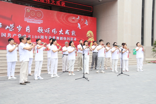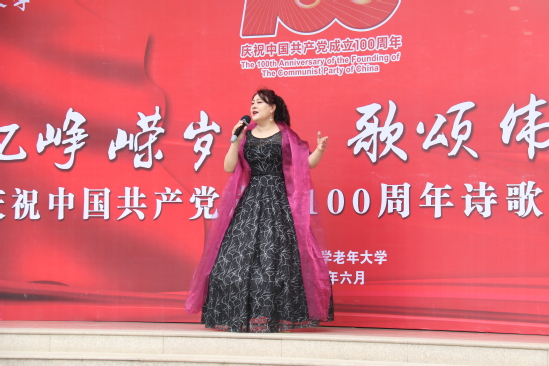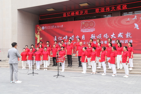 老年大学各教学班在学校博物馆广场演唱了《唱支山歌给党听》《映山红》《党啊、亲爱的妈妈》《永远跟党走》《今天是你的生日、中国》《我和我的祖国》等歌颂党、歌颂祖国的经典歌曲,表达了离退休职工热爱党、热爱社会主义祖国,听党话、跟党走的坚定决心。
