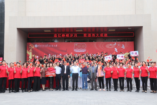 6月19日上午,西北师大离退休职工党委、离退休职工服务中心、老年教育工作者协会、老年大学共同举办“追忆峥嵘岁月、歌颂伟大成就——庆祝中国共产党成立100周年诗歌舞蹈快闪活动”。党委书记张俊宗,党委常委、副校长田澍参加庆祝活动,学校相关部门负责人、老年教协负责人及老年大学学员近四百人参加庆祝活动。