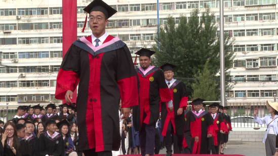 上午八时,校领导、学位委员会成员在毕业生的呐喊欢呼声中步入会场并在主席台就坐。全体人员起立,奏唱中华人民共和国国歌,毕业典礼正式拉开帷幕。