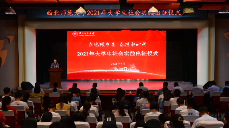 仪式上,团委负责人介绍了2021年大学生社会实践基本情况。与会领导为实践团队授旗。心理学院教师朱雅雯、生命科学学院2020级学生陈蓉分别代表指导教师和实践队员发言。