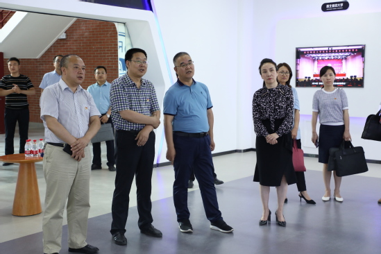 在文科实训楼信息展示大厅,丁虎生一行深入询问了解学校党史学校教育重点工作推进情况,查阅了习近平总书记“七一”重要讲话学习宣传贯彻工作方案和学校党史学习教育专题学习、专题培训、专题宣讲、“我为师生办实事”等工作资料。