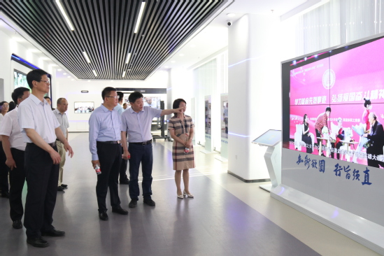 唐晓明一行先后深入学校棫樸苑学生创新创业园区、文科实训楼信息展示大厅、网信办、融媒体中心、校史馆博物馆等地,详细了解学校在科学研究、社会服务、基础设施建设、信息化建设等方面的新成就。