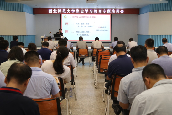 7月17日至18日,西北师大举行党史学习教育专题培训班。纪委书记、监察专员马庆主持培训报告会。全校副处级以上干部及相关部门负责人参加专题培训。