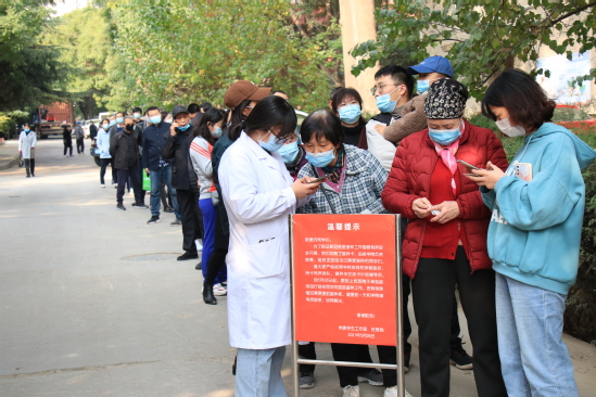 当前,疫情防控形势严峻,任务紧迫。为切实筑牢疫情防控防线,确保校园安全和师生健康,自2021年10月21日2:30起,学校和师大社区在艺苑广场、校医院设立核酸检测点,对全校所有人员(含常住人口、流动人口)开展核酸检测工作。目前,核酸检测工作正紧张有序进行。此外,21日下午,兰天学生公寓检测点已有序开始核酸检测工作。